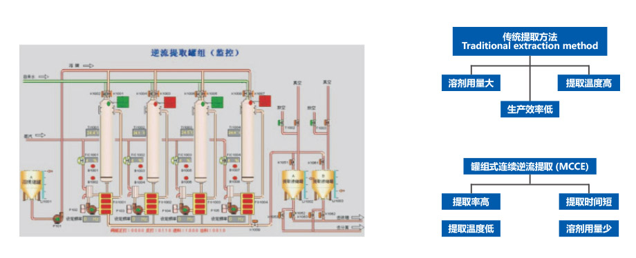 3、標準化的全自動化操作流程,實現溫度、藥液ph(選配)、流速(選配)等關鍵工藝參數的自動控制,保證了連續逆流提取工藝的穩定性和可靠性;